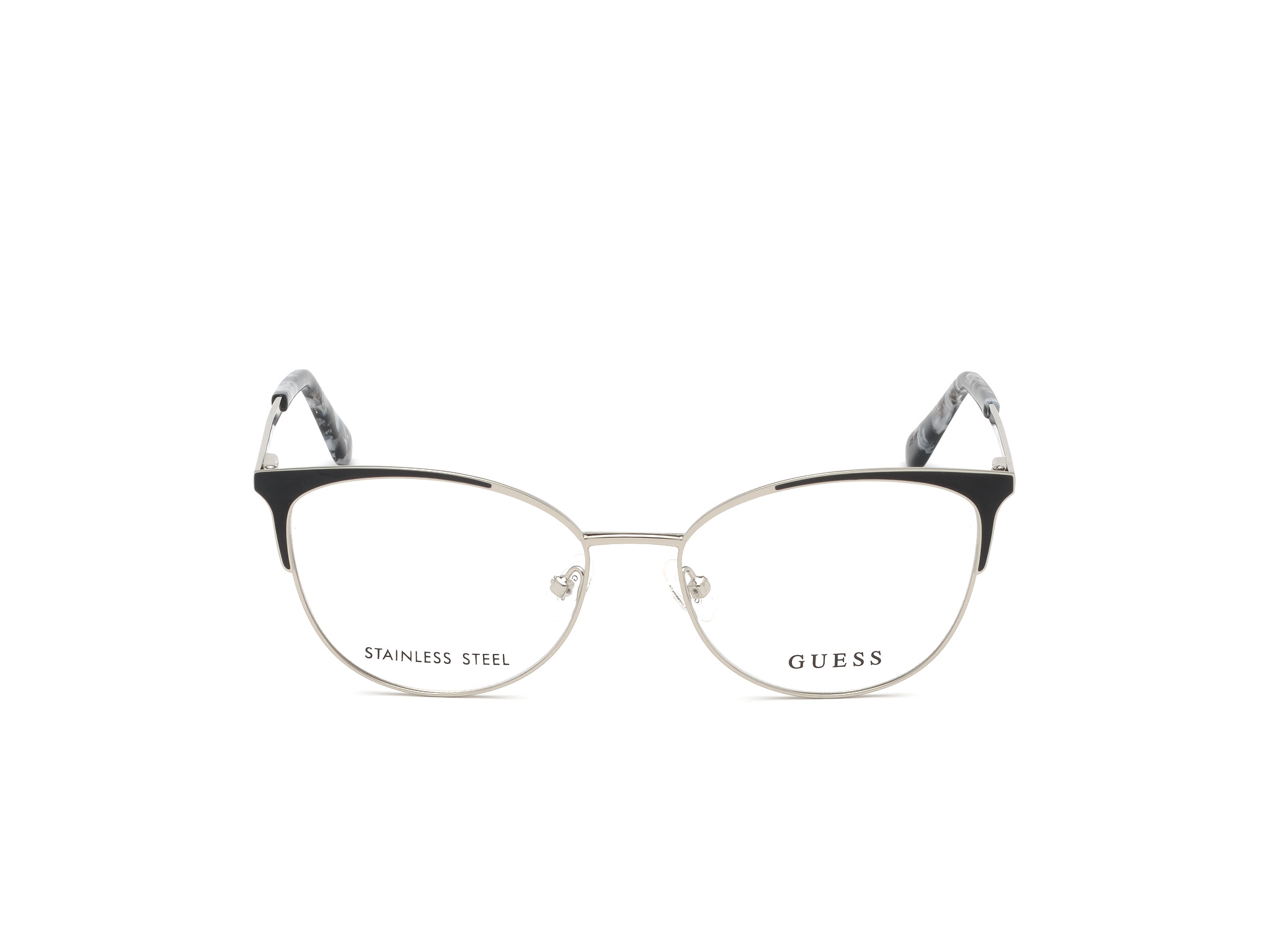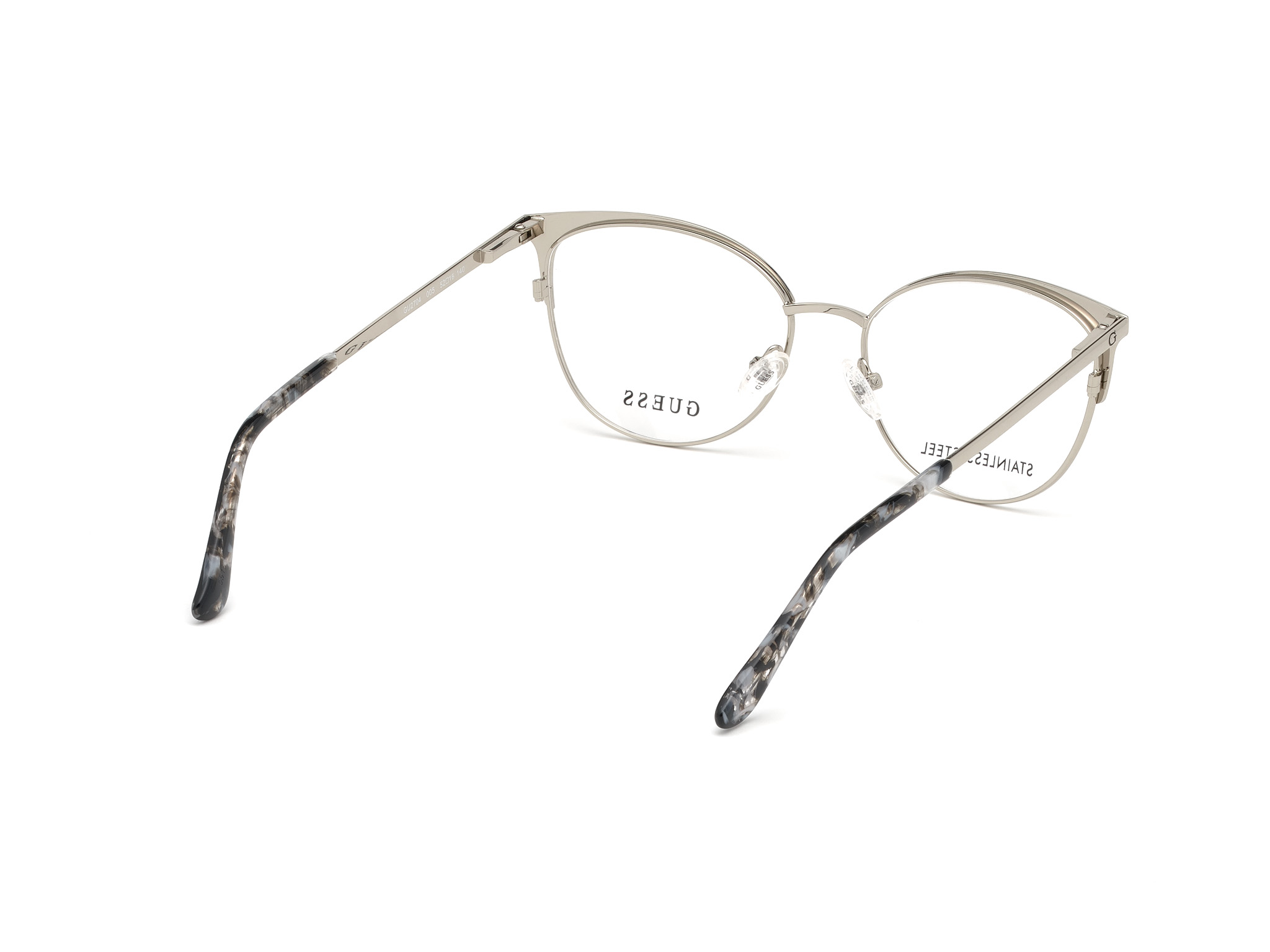 Korekcijska očala GU2704, blagovne znamke Guess, predstavljajo del aktualne ženske kolekcije, ki zaradi nenavadne oblike mačjih oči in polnih, a izjemno elegantnih kovinskih okvirjev veljajo za pravo posebnost. Namenjena so odločnim ženskam, ki jih ni strah izstopati. Izredno se podajo vsem predstavnicam nežnejšega spola z okroglim obrazom, nič manj pa ne pristajajo tudi kvadratni in srčasti obliki. Piko na i predstavljajo barvni poudarki na robovih okularja.