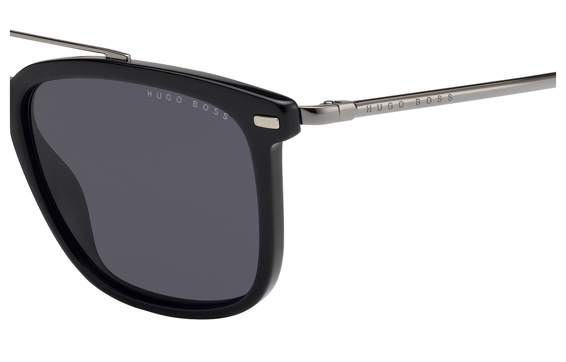 Okvir sončnih očal Hugo Boss je izdelan iz visokokakovostne plastike, ki jo odlikujeta izjemna lahkost in visoka vzdržljivost. Fleksibilne ročke, oplemenitene z gravuro, so izdelane iz elegantne kovine, odporne na korozijo. Leče v sivem odtenku so prilagojene tako, da v celoti preprečujejo prehod škodljivih UV-žarkov.