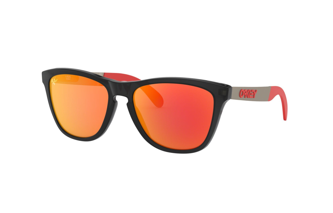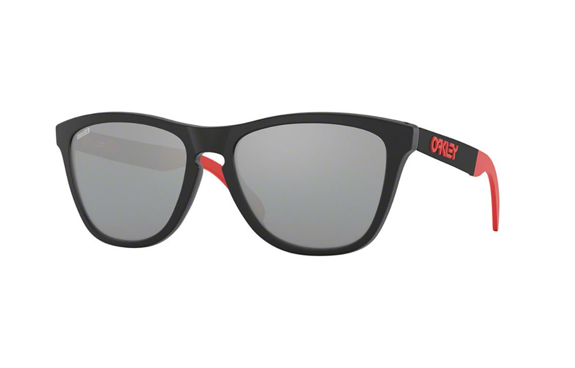 Sončna očala FROGSKINS MIX Marc Marquez Signature Series (OO9428 942811), blagovne znamke Oakley, so trenden model med aktualno ponudbo sončnih očal za športne moške. Poln okvir trapezne oblike ima rahlo poudarjen zgornji lok in je izdelan iz matirane visokokakovostne plastike. Mostiček je poudarjen in združen z zgornjim lokom. Široke ročke črne barve, na katerih se nahaja izbočen logotip blagovne znamke rdeče barve, prehajajo v zadnjem delu v zaključek rdeče barve, kar daje okvirju športen značaj. Sončna očala so popolna izbira za samozavestne moške, ki so aktivni in jih privlačijo številni športi. Očala pristajajo obrazom oglate in ovalne oblike.